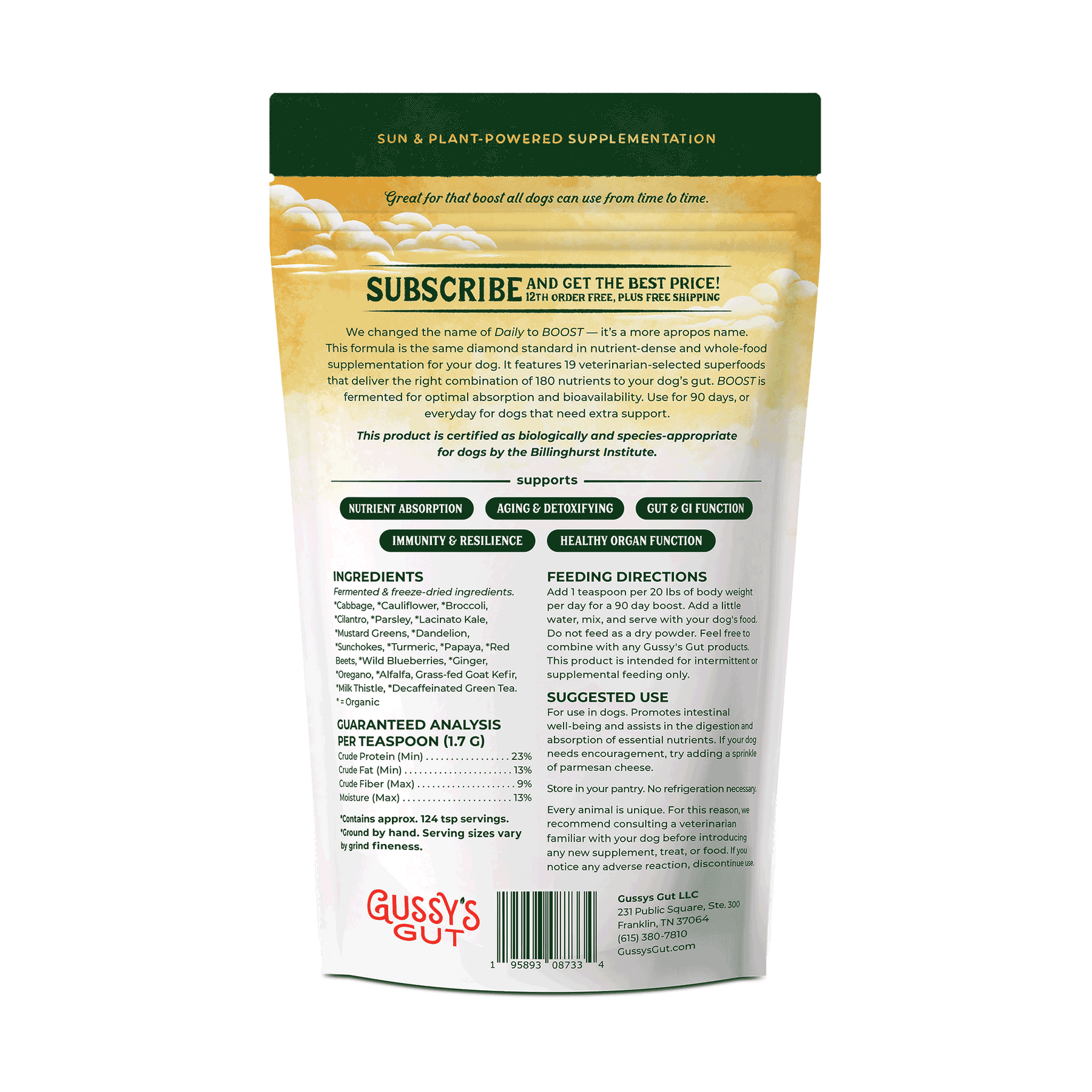"My dogs only eat real food. I don't add in any a synthetic supplements into their food. My dogs LOVE Gussy's Gut Boost!"